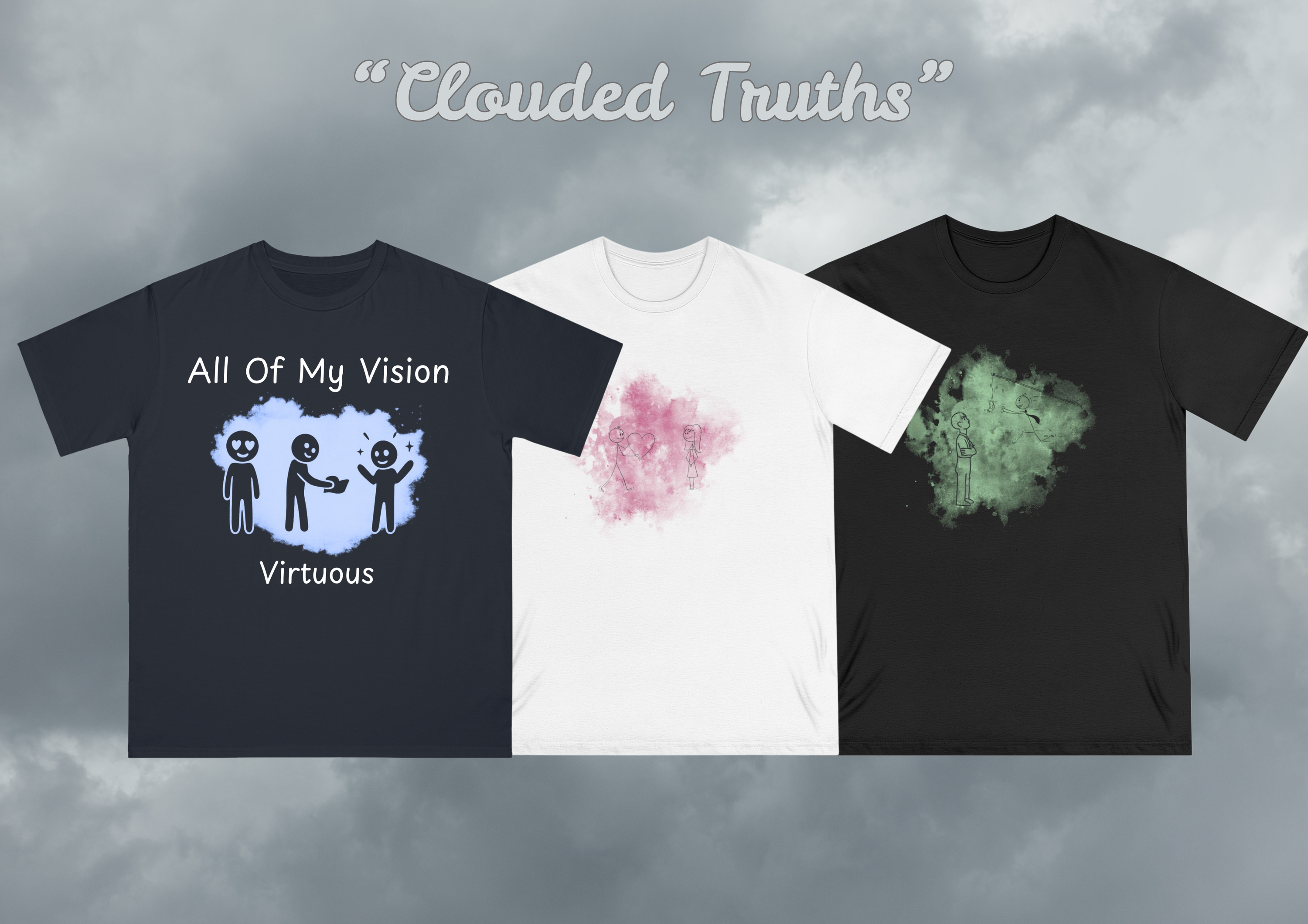 In every cloud, there’s a weight we carry stories we hide, emotions we mask, visions blurred by the haze. This collection unravels those truths, piece by piece. Each design is a fragment of vulnerability made visible, a reminder that behind the layers we show the world, there’s always more beneath. Clouded Truths is not about clarity, it’s about embracing the fog and finding yourself within it.